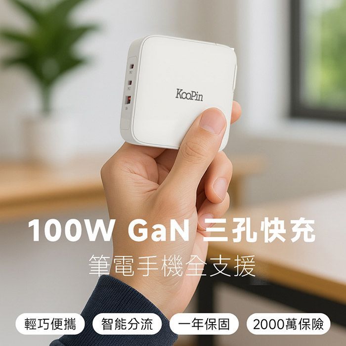 100W氮化鎵充電器 KooPin GaN PD快充組合包 GAN13手機平板筆電極速充電器(附贈快充線 2C1A 三孔輸出Type-C TO Type-C 編織線 100W快充線