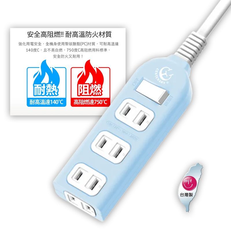 CT-2142B 1切4座2P延長線 嬰兒藍 6尺 2P延長線,一開關四插座,直插頭,台灣製造